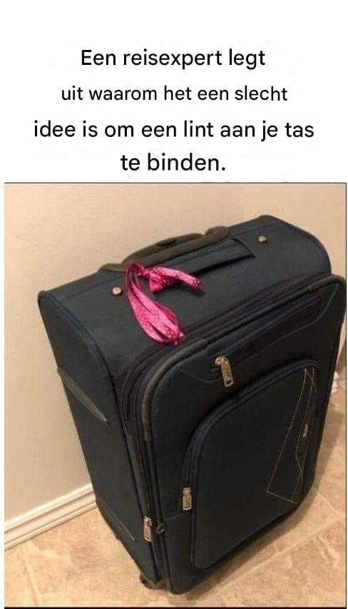 Een reisexpert legt uit waarom het binden van een lint aan je tas een slecht idee is.